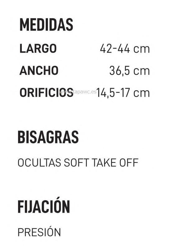 Adaptable a: Amadeus , Apolo , Aspirambo , Atenea , Atila , Bali , Brive , Capri , Clásica , Elia , Europa plus , Gaeta , Granada Nuevo , Grangracia , Huno , Lizz , Lucerna , Mideo , Munique , Neptuno , Nerja , Spa , Triana , Venecia , Venus , Victoria y Otros modelos: Comprobar medidas con su inodoro.