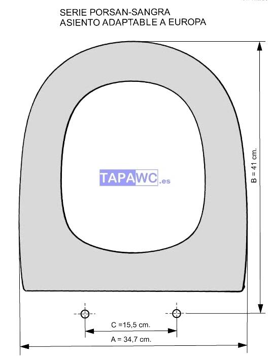 Asiento inodoro EUROPA tapawc compatible con Porsan asiento DM de alta densidad especial anti humedad LACADA con herrajes fijos inox