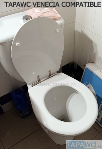 Asiento de inodoro VENECIA con distancia entre orificios 15,50 cms tapawc compatible con fabricante marca Porsan o Sangrá asiento fabricado en dm de alta densidad especial antihumedad lacado con herraje fijo inox del tipo roscado por bajo.